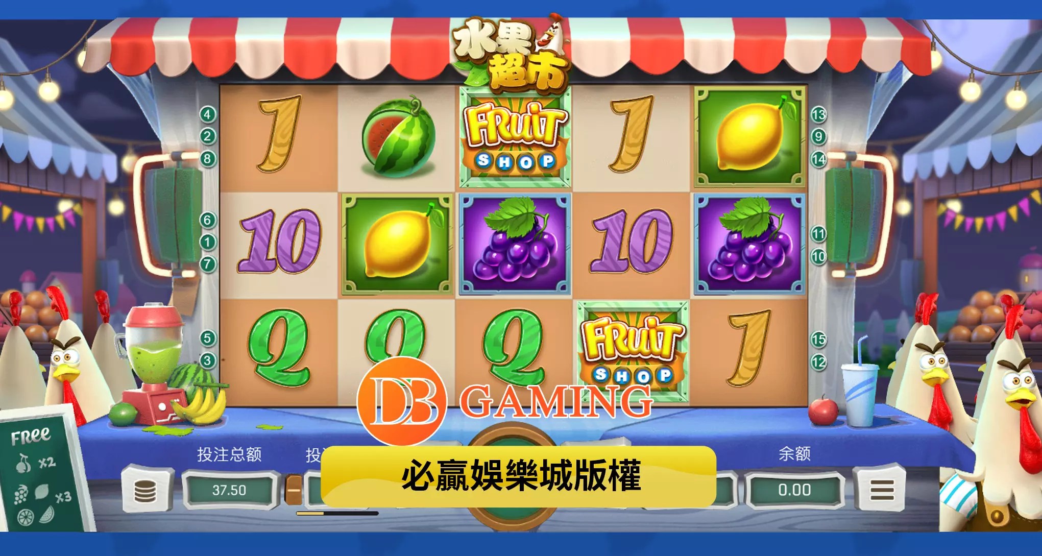 水果超市的返還率高達九十七點五三,是一款高返還率的老虎機台。此外,遊戲共有十五條賠付線,並充滿了可愛的元素,例如活躍的主角雞。玩家還有機會觸發百搭符號,增加遊戲的趣味性。